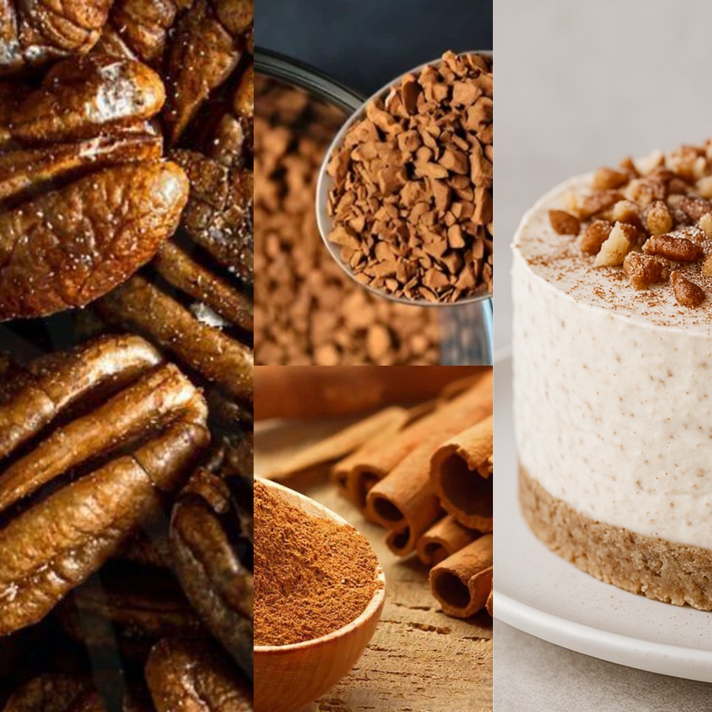 Warm, spiced cinnamon meets rich coffee and a crunchy nut base.